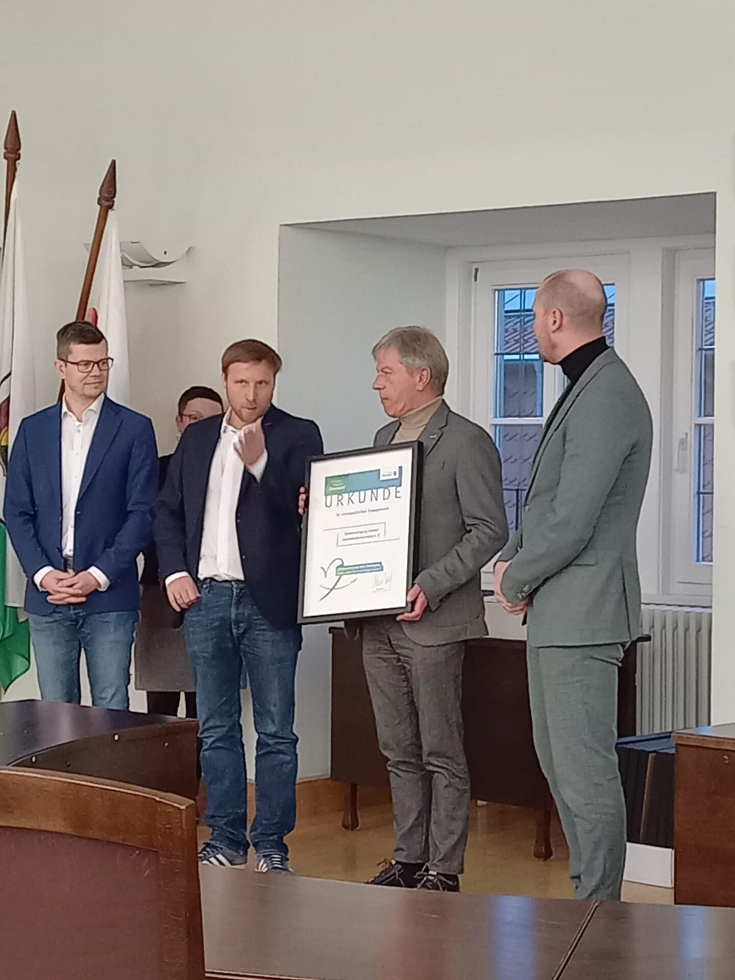 Die Urkundenübergabe erfolgte durch Daniel Schultheiß, Oberbürgermeister der Stadt Ilmenau sowie David Möller, Staatssekretär für Sport und Ehrenamt der Thüringer Staatskanzlei. Beide betonten die gesellschaftliche Relevanz des Ehrenamtes und hoben die Vorbildfunktion von Vereinen wie der SpVgg Geratal hervor.